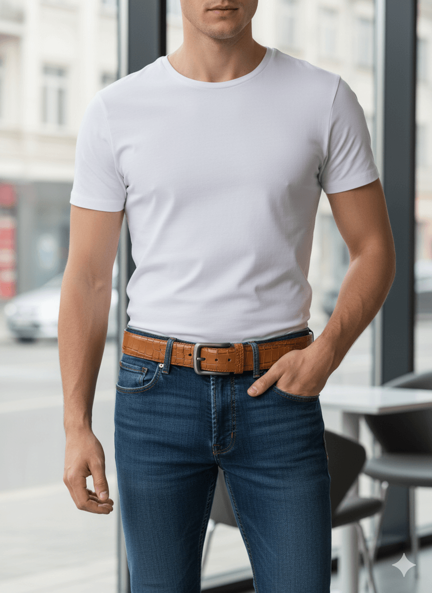 Add a touch of class to your casual and jeans wear with this modern crocodile-pattern belt, built for comfort, style, and strength.